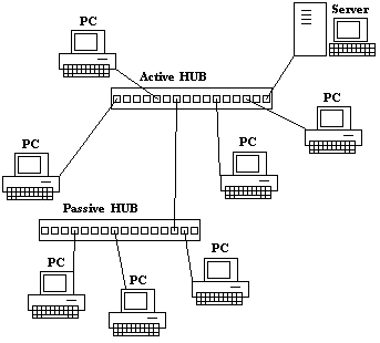 Không có các thành phần máy tính hóa trong một hub thụ động và chúng được sử dụng để kết nối các tín hiệu từ các phân đoạn cáp mạng khác nhau. Chúng chỉ đơn giản là các đầu nối kết nối các dây đến từ các thiết bị khác nhau trong cấu trúc hình sao. Không có quá trình xử lý hoặc tái tạo tín hiệu trong các hub này và chúng chỉ có thể lặp lại hoặc sao chép các tín hiệu. Do đó, chúng không cần điện. Chúng cũng không làm sạch thông điệp. Các hub thụ động không khuếch đại hoặc tăng cường tín hiệu vì khoảng cách cáp giảm đi một nửa.
